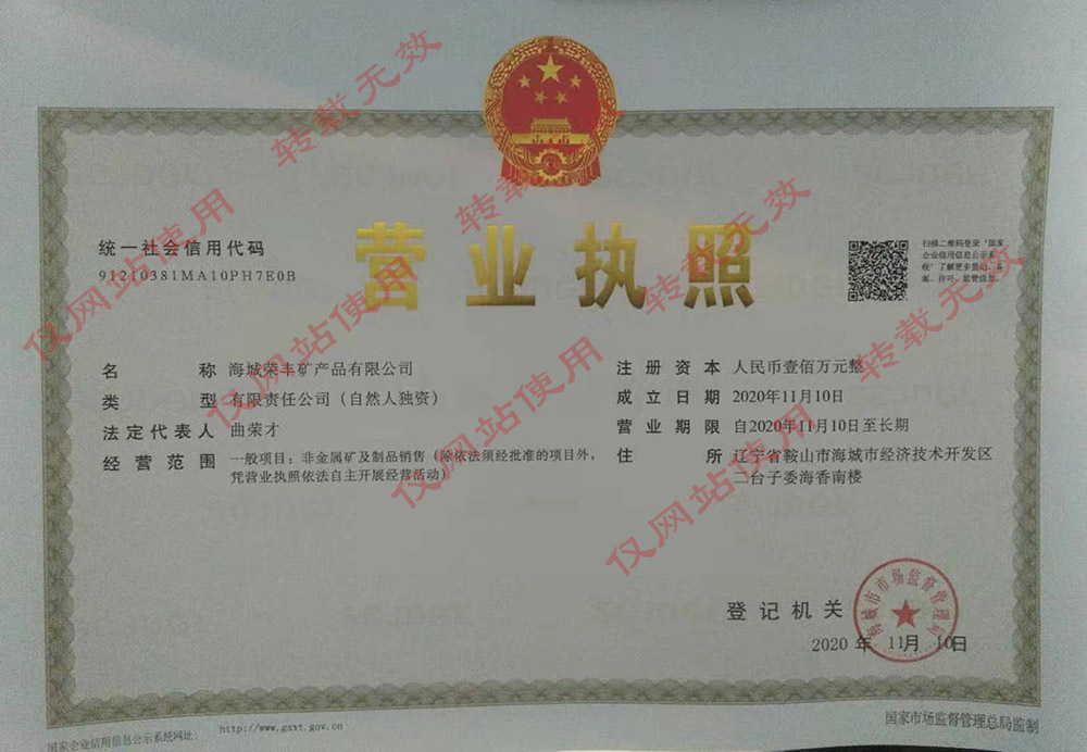 版權(quán)所有:海城榮豐礦產(chǎn)品有限公司 咨詢電話:13604120688 地址:遼寧省海城市鐵西開發(fā)區(qū)黃河路52號(hào) 遼ICP備16002086號(hào)-1
